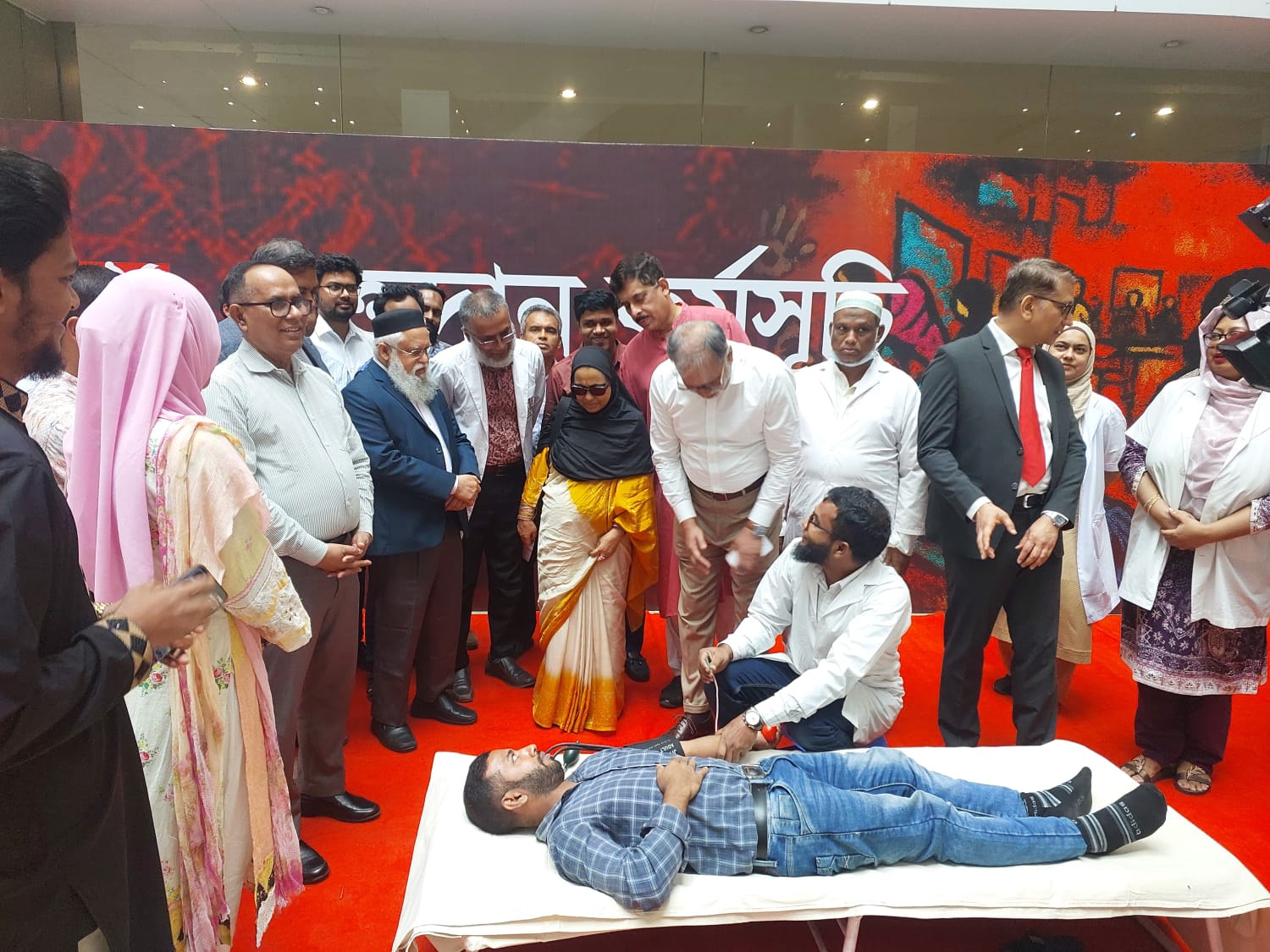 আজ ২৮ জুলাই ২০২৫ তারিখে অনুষ্ঠিত জুলাই পুনর্জাগরণ অনুষ্ঠানমালা-২০২৫ উদযাপনের অংশ হিসেবে শহীদ আবু সাঈদ ইন্টারন্যাশনাল কনভেনশন সেন্টারে আয়োজিত রক্তদান কর্মসূচি পরিদর্শন করেন মাননীয় স্বাস্থ্য উপদেষ্টা নূরজাহান বেগম, মাননীয় বিশেষ সহকারী অধ্যাপক ডা. মোঃ সায়েদুর রহমান, সচিব, স্বাস্থ্য সেবা বিভাগ জনাব মোঃ সাইদুর রহমান, মহাপরিচালক, স্বাস্থ্য অধিদপ্তর অধ্যাপক ডা. মোঃ আবু জাফর এবং অন্যান্য কর্মকর্তাবৃন্দ।